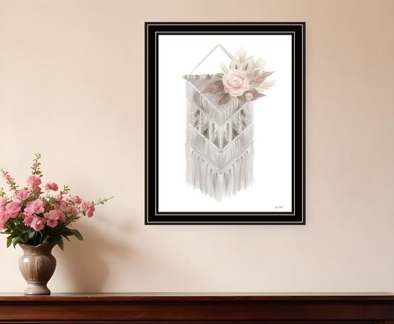 This bohemian macrame black framed print wall art will add a beautiful decorative accent to your decor. This print is a visual artistic expression that allows you to decorate your space in style. Reproduced for you on wood, this hanging decorative accent will be a trendy and fashionable way to dress your walls in a rustic and modern farmhouse vibe. Adding this hanging wall art to your space to make your room feel more finished and attractive. Instantly liven up your space with this art that brings color and dimension to your walls. 18-inch H x 14-inch W x 1-inch D