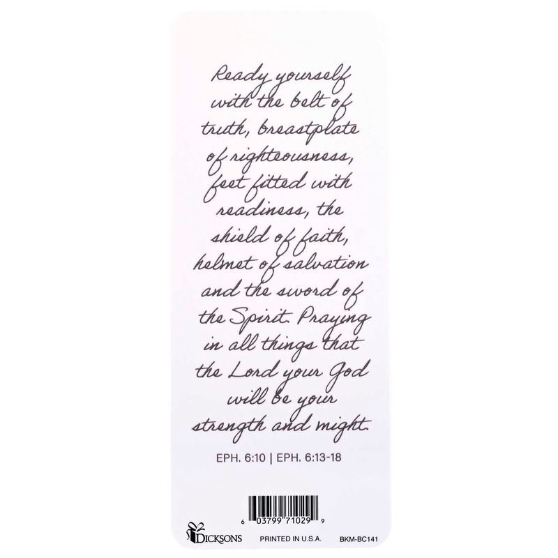 This Bookcard-Sized Bookmark Is 2-5/8 X 6-3/8; Card Stock Is Clear Laminated For Extra Durability. On The Front, This White Bookmark Is A Feminine Version Of The Full Armor Of God Theme And Features A Helmet With A Pink Floral Accent And Reference To Ephesians 6:10-20 With: Put On The Full Armor Of God. The Back Side Has A Paraphrase Of Ephesians 6:10,13-18: Ready Yourself With The Belt Of Truth, Breastplate Of Righteousness, Feet Fitted With Readiness, The Shield Of Faith, Helmet Of Salvation And The Sword Of The Spirit. Praying In All Things That The Lord Your God Will Be Your Strength And Might. Printed In USA.