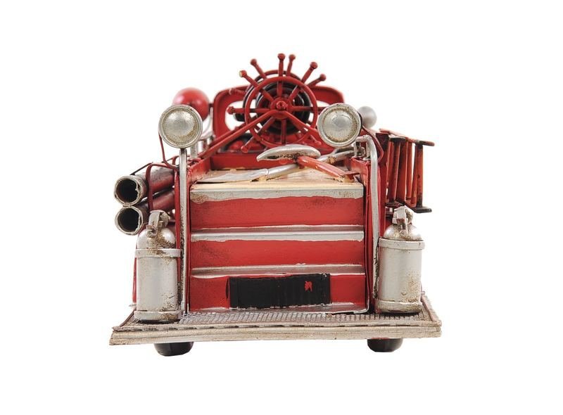 A true icon of American firefighting, the c1938 Ford Red Fire Engine Sculpture pays homage to this classic fire engine of the 1930s. Its timeless design is embodied in this hand-made replica made of metal and authentically decorated by the most skilled artisans. It features stunning details, like rolling wheels, a pumper, tank, firefighting ladders, hose, a license plate, and even axes. Built with a scale 1:40 this sculpture is a sought-after collector’s piece. 5.5″ x 14.5″ x 5″