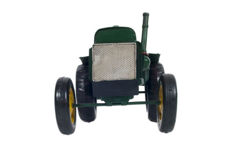 A replica of one of the most popular tractors of all time, c1939 John Deere Model D Tractor Sculpture is a true gem for any collector or enthusiast. The Model D Tractor had the longest run of all John Deere tractors, from 1939 to 1953. Entirely hand-made out of metal this unique sculpture features impressive detailing like rolling wheels, axles, shaft, a chimney, and much more. Hand-painted in John Deere’s distinctive green this is a perfect decor and collection piece. An 6.5” x 11.5” x 6″Ingredients: Size: Color: Made In: Vietnam