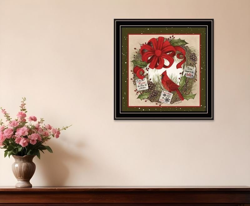 This cardinal wreath black framed wall art is a great way to celebrate and decorate for the holidays. This acrylic painting is a way to express your artistic style and add some fashion to your walls. Reproduced for you on paper, this hanging decorative accent will be a trendy and fashionable way to dress your walls. Adding this hanging wall art to your space to make your room feel more finished and attractive. Utilize this opportunity to create a focal point in the room with this fabulous wall decor option. 14-inch h x 14-inch w x 1-inch d.