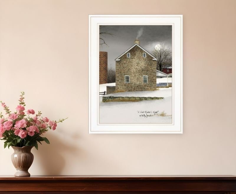 Bring some sizzle to your space with this eye-catching cold winters night 1 white framed print wall art. This print is a visual artistic expression that allows you to decorate your space in style. Reproduced for you on paper, this hanging decorative accent will be a trendy and fashionable way to dress your walls. Hang on your wall to add some up to date fashion and decoration. Instantly liven up your space with this art that brings color and dimension to your walls. 19-inch H x 15-inch W x 1-inch D