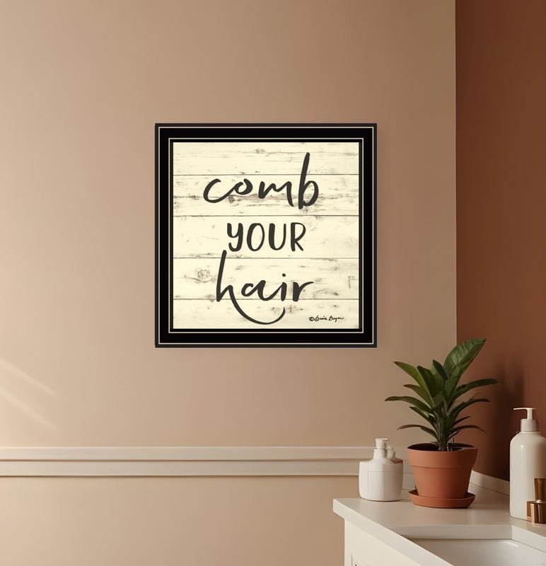 The comb your hair black framed print bathroom wall art is the perfect decorative accessory for your home. This print is a visual artistic expression that allows you to decorate your space in style. Reproduced for you on wood, this hanging decorative accent will be a trendy and fashionable way to dress your walls in a rustic and modern farmhouse vibe. Adding this hanging wall art to your space to make your room feel more finished and attractive. Utilize this opportunity to create a focal point in the room with this fabulous wall decor option. 14-inch H x 14-inch W x 1-inch DIngredients: Size: Color: Made In: United States