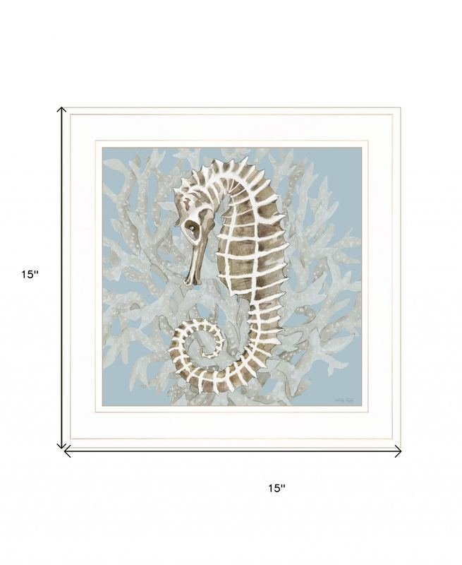 Add an air of fashion to your room and rejuvenate the space with this coral seahorse ii 2 white framed print wall art. This print is a visual artistic expression that allows you to decorate your space in style. Reproduced for you on wood, this hanging decorative accent will be a trendy and fashionable way to dress your walls in a rustic and modern farmhouse vibe. Hang on your wall to add some up to date fashion and decoration. Utilize this opportunity to create a focal point in the room with this fabulous wall decor option. 15-inch H x 15-inch W x 1-inch DIngredients: Size: Color: Made In: United States
