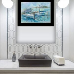 The dockside 1 black framed print wall art is the perfect decorative accessory for your home. This print is a visual artistic expression that allows you to decorate your space in style. Reproduced for you on paper, this hanging decorative accent will be a trendy and fashionable way to dress your walls. Hang on your wall to add some up to date fashion and decoration. Utilize this opportunity to create a focal point in the room with this fabulous wall decor option. 14-inch H x 18-inch W x 1-inch DIngredients: Size: Color: Made In: United States
