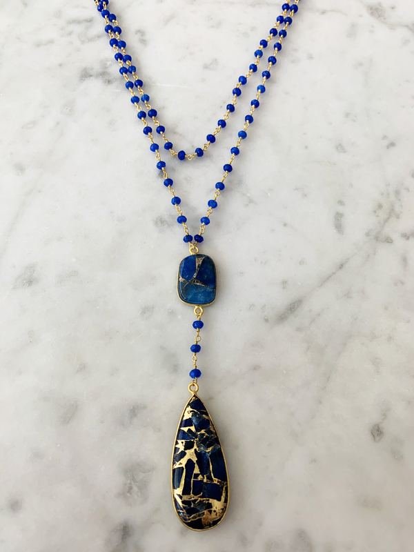 Double Diana Denmark Necklace in Sapphire with Blue Mojave Copper Turquoise Drop.