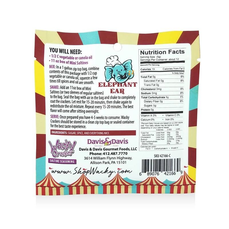 Do you remember when mom or grandma would use the leftover pie dough to cinnamon sugar it and bake it as a treat? This taste just like that! Elephant ears come from the Midwest where they sell large fried doughs that are cinnamon and sugar. As a kid, it looked as big as an “elephant ear”. We thought everyone grew up with them, we did! No msg. No artificial flavors or colors.