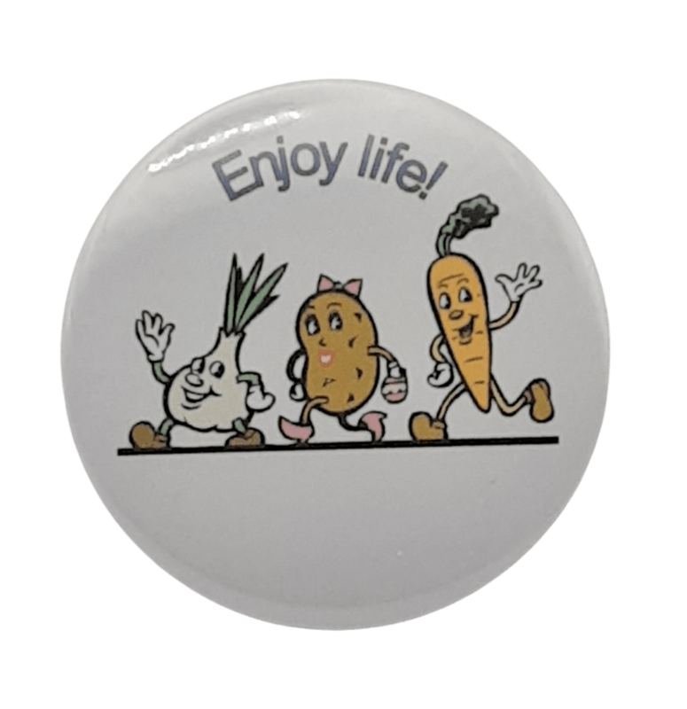 Enjoy Life: A unique and stylish 2.25-inch pinback button, perfect for adding a touch of personality to your attire or accessories. Features a high-quality design and durable materials for long-lasting use. Ideal for collectors and enthusiasts.Ingredients: Size: 2.25 inchColor: Made In: United States