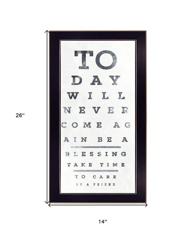 Add an air of fashion to your room and rejuvenate the space with this eye chart i 4 black framed print wall art. This print is a visual artistic expression that allows you to decorate your space in style. Reproduced for you on paper, this hanging decorative accent will be a trendy and fashionable way to dress your walls. Adding this hanging wall art to your space to make your room feel more finished and attractive. Instantly liven up your space with this art that brings color and dimension to your walls. 26-inch H x 14-inch W x 1-inch DIngredients: Size: Color: Made In: United States