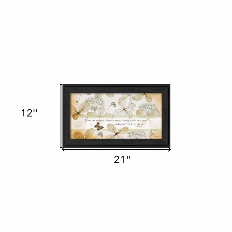 Unique and decorative, this faith sees black framed print wall art will leave a lasting impression. This print is a visual artistic expression that allows you to decorate your space in style. Reproduced for you on paper, this hanging decorative accent will be a trendy and fashionable way to dress your walls. Adding this hanging wall art to your space to make your room feel more finished and attractive. Utilize this opportunity to create a focal point in the room with this fabulous wall decor option. 12-inch H x 21-inch W x 1-inch D