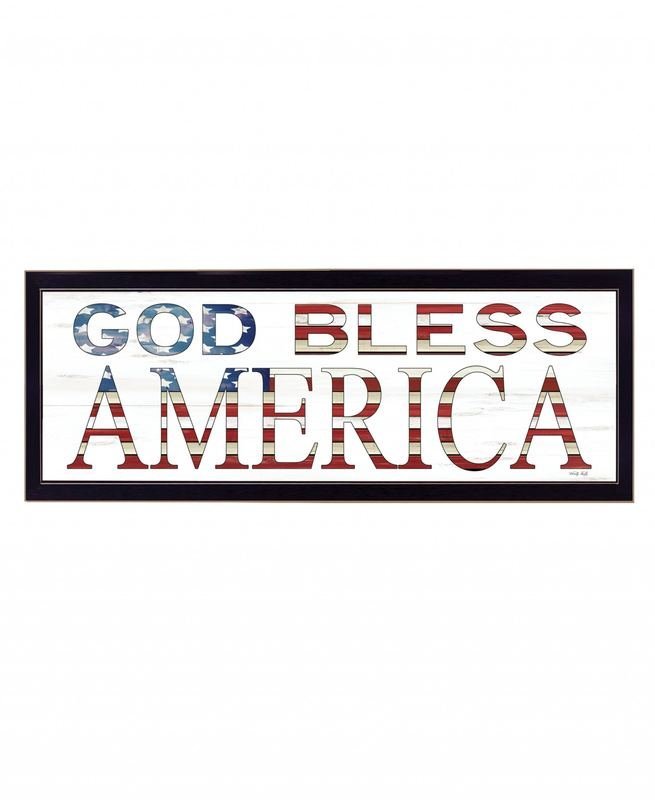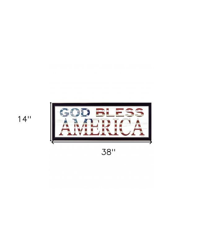 This god bless america 7 black framed print wall art will add a beautiful decorative accent to your decor. This print is a visual artistic expression that allows you to decorate your space in style. Reproduced for you on wood, this hanging decorative accent will be a trendy and fashionable way to dress your walls in a rustic and modern farmhouse vibe. Hang on your wall to add some up to date fashion and decoration. Instantly liven up your space with this art that brings color and dimension to your walls. 14-inch H x 38-inch W x 1-inch D
