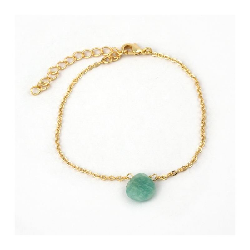 Simple amazonite stone bracelet with extender in vermeil.