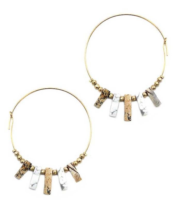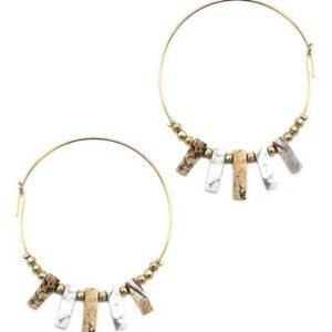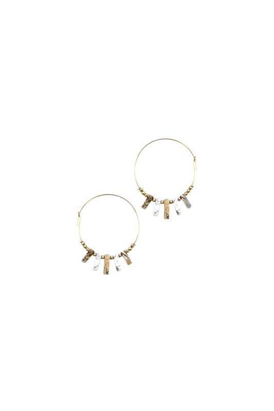 Gold Semi Precious Stone Agate Wire Hoop Earring.