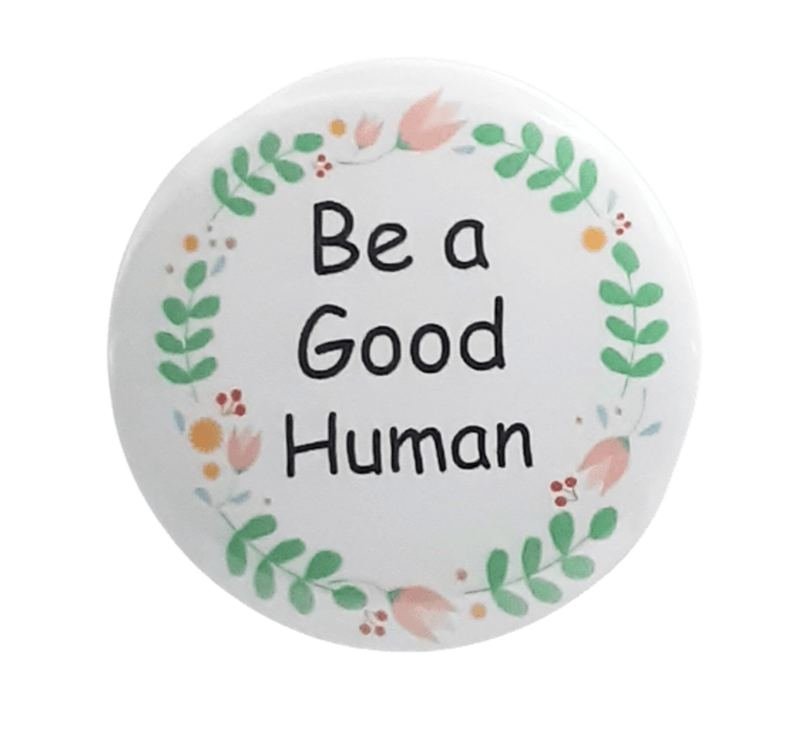 Good Human: A unique and stylish 2.25-inch pinback button, perfect for adding a touch of personality to your attire or accessories. Features a high-quality design and durable materials for long-lasting use. Ideal for collectors and enthusiasts.Ingredients: Size: 2.25 inchColor: Made In: United States