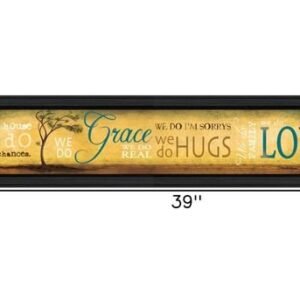 Bring some sizzle to your space with this eye-catching grace and love black framed print wall art. This print is a visual artistic expression that allows you to decorate your space in style. Reproduced for you on paper, this hanging decorative accent will be a trendy and fashionable way to dress your walls. Hang on your wall to add some up to date fashion and decoration. Instantly liven up your space with this art that brings color and dimension to your walls. 9-inch H x 39-inch W x 1-inch DIngredients: Size: Color: Made In: United States