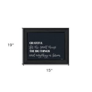 Unique and decorative, this grateful for everything black framed print wall art will leave a lasting impression. This print is a visual artistic expression that allows you to decorate your space in style. Reproduced for you on wood, this hanging decorative accent will be a trendy and fashionable way to dress your walls in a rustic and modern farmhouse vibe. Adding this hanging wall art to your space to make your room feel more finished and attractive. Instantly liven up your space with this art that brings color and dimension to your walls. 15-inch H x 19-inch W x 1-inch D