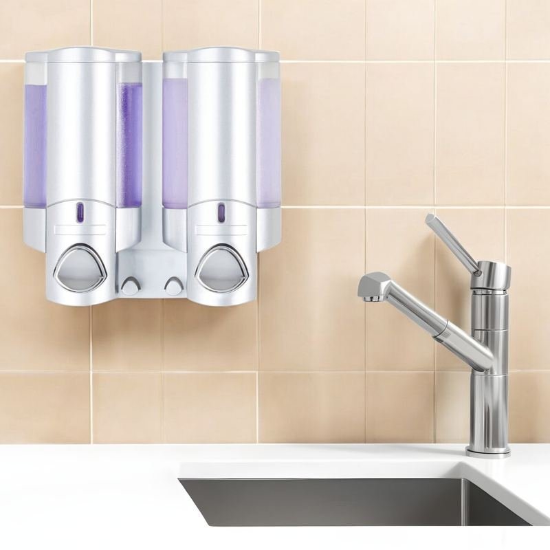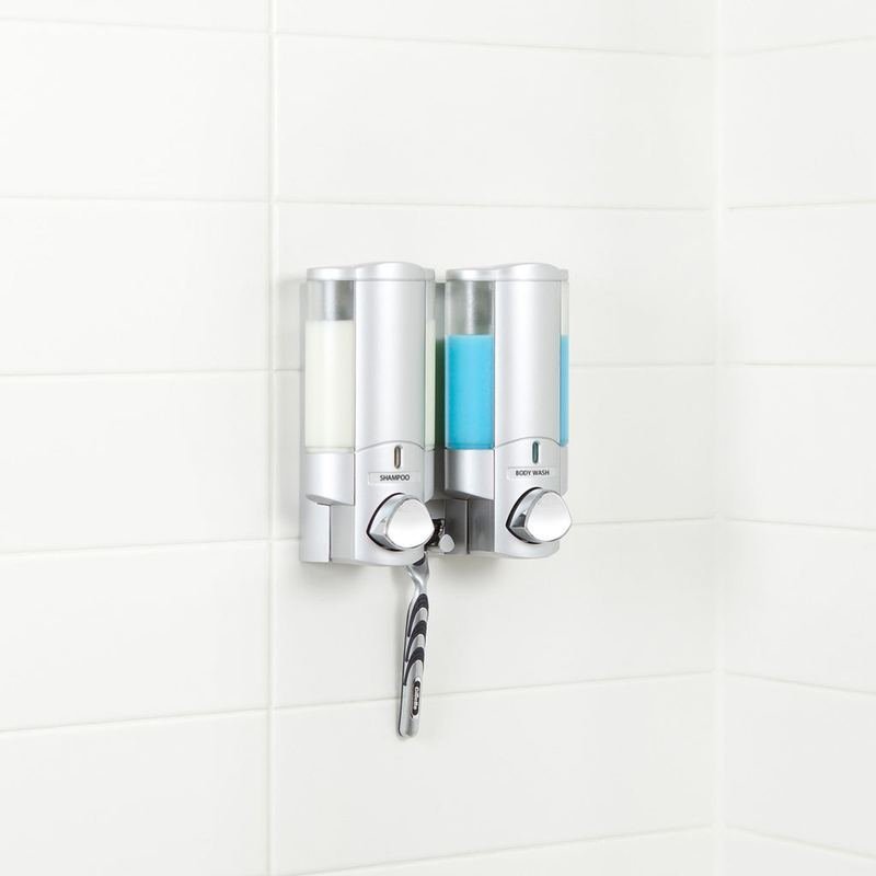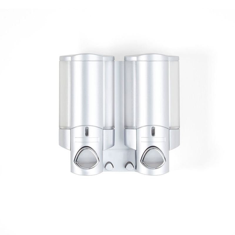 Add this aesthetically pleasing matte silver / gray heavy duty plastic two chamber wall mount soap dispenser to your bathtub, shower, or sink area for a good looking and practical dispensing solution. Help to alleviate clutter and give your space a clean and cohesive look and feel. Holds a total capacity of 22 ounces spread between 2 individual compartments. Dispenses just the right amount of liquid each time, making this a potential money-saver as it cuts down on waste and allows you to buy bulk sized refill bottles of your product that are not only typically more cost effective, but are eco-friendly as well. 7-inch H x 7.25-inch W x 3.25-inch DIngredients: Size: Color: Made In: Taiwan