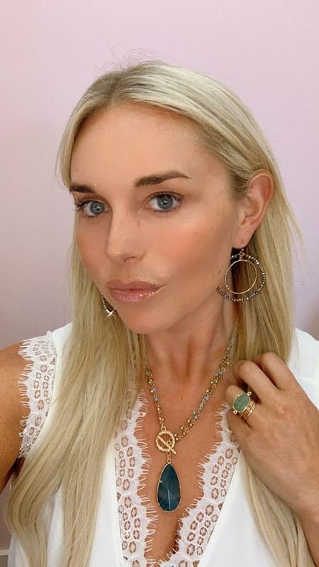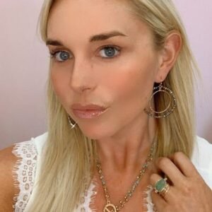 Grey Crystal Double Gold Hoop Drop Earring.