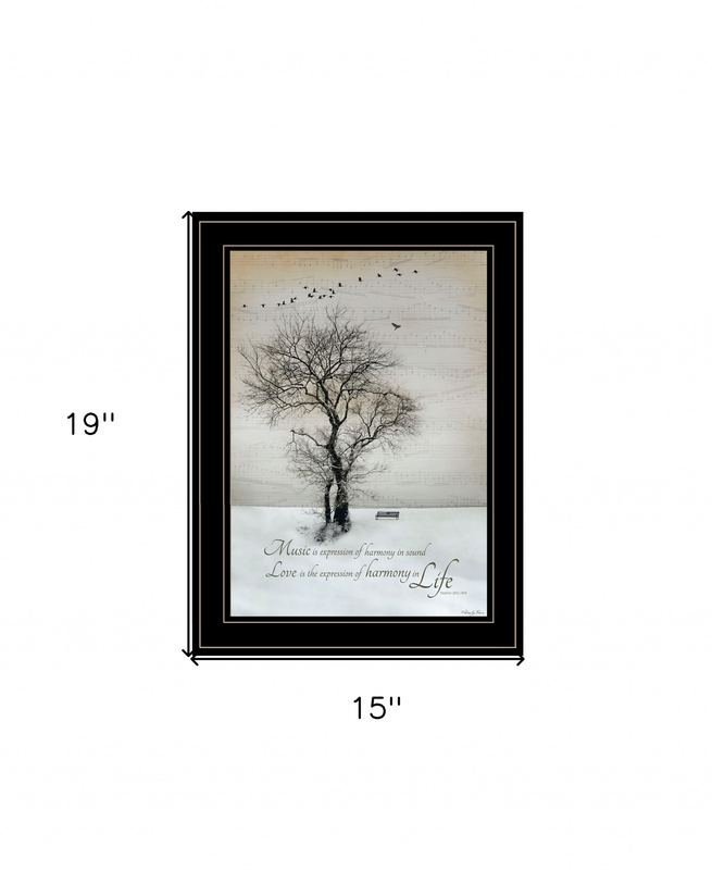 Unique and decorative, this harmony 2 black framed print kitchen wall art will leave a lasting impression. This print is a visual artistic expression that allows you to decorate your space in style. Reproduced for you on paper, this hanging decorative accent will be a trendy and fashionable way to dress your walls. Hang on your wall to add some up to date fashion and decoration. Instantly liven up your space with this art that brings color and dimension to your walls. 19-inch H x 15-inch W x 1-inch D
