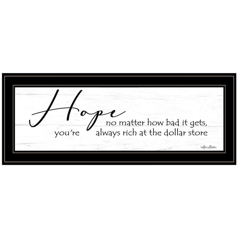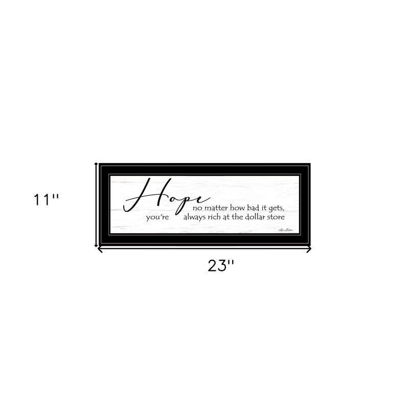 This hope black framed print wall art will add a beautiful decorative accent to your decor. This print is a visual artistic expression that allows you to decorate your space in style. Reproduced for you on paper, this hanging decorative accent will be a trendy and fashionable way to dress your walls. Hang on your wall to add some up to date fashion and decoration. Instantly liven up your space with this art that brings color and dimension to your walls. 11-inch H x 23-inch W x 1-inch DIngredients: Color: Size: QTY: 1.0