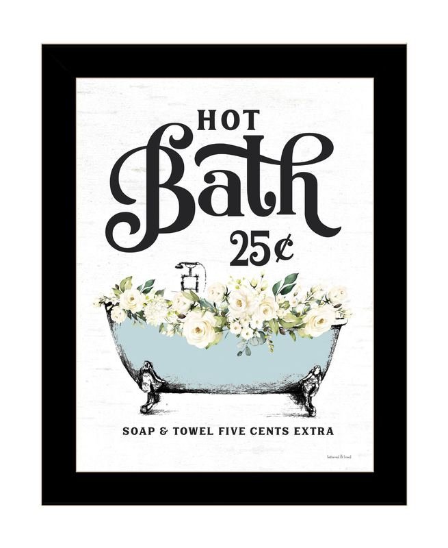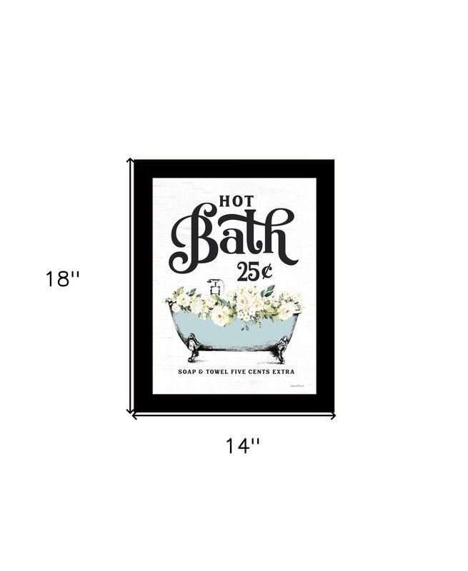 Unique and decorative, this hot bath black framed print bathroom wall art will leave a lasting impression. This print is a visual artistic expression that allows you to decorate your space in style. Reproduced for you on wood, this hanging decorative accent will be a trendy and fashionable way to dress your walls in a rustic and modern farmhouse vibe. Hang on your wall to add some up to date fashion and decoration. Instantly liven up your space with this art that brings color and dimension to your walls. 18-inch H x 14-inch W x 1-inch DIngredients: Size: Color: Made In: United States