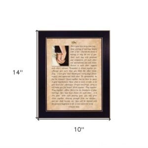 Bring some sizzle to your space with this eye-catching i do 4 black framed print wall art. This print is a visual artistic expression that allows you to decorate your space in style. Reproduced for you on paper, this hanging decorative accent will be a trendy and fashionable way to dress your walls. Adding this hanging wall art to your space to make your room feel more finished and attractive. Instantly liven up your space with this art that brings color and dimension to your walls. 14-inch H x 10-inch W x 1-inch DIngredients: Color: Size: QTY: 1.0
