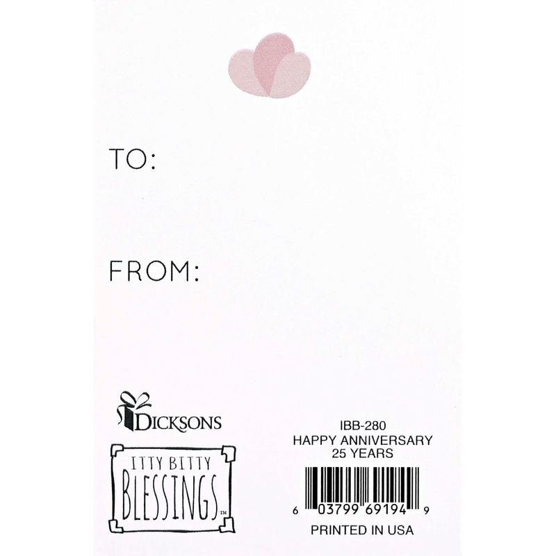 Itty Bitty Blessings (Tm) Cards Come In A Pack Of 24. Front Of Card Features A Bottom Floral Border With Text And Scripture. Text: Happy Anniversary. Congratulations! 25 Years. Mark 10:9 What God Has Joined Together, Let No One Separate. To And From Spaces On The Back For Personalization. Card Size Is 2 X 3. Printed In USA.Ingredients: Size: Color: Black/WhiteMade In: United States