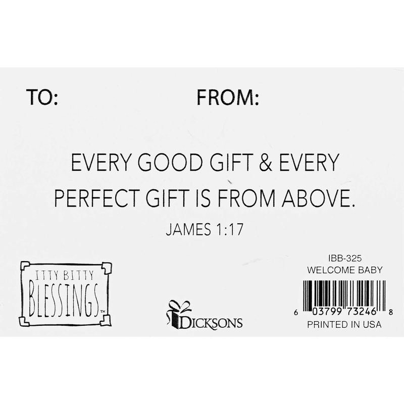 Itty Bitty Blessings (Tm) Cards Come In A Pack Of 24. Front Of This Card Features A New Baby Theme With Text: Welcome Baby. The White Back Displays James 1:17: Every Good Gift And Every Perfect Gift Is From Above – Also On The White Back Are To And From Spaces For Personalization. Made In USA. Size 3X2. Packed In A Polybag.