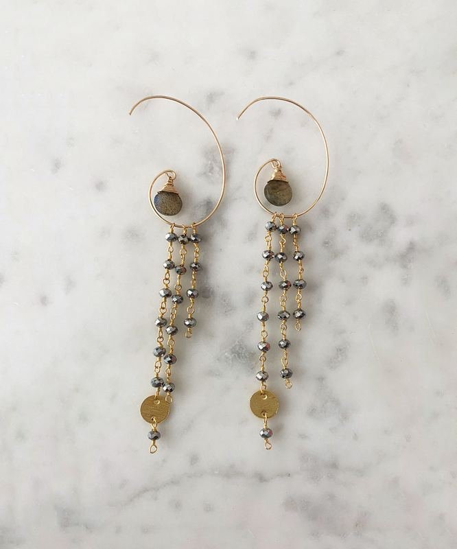 Jessica Hoop Earring in Labradorite and Pyrite.