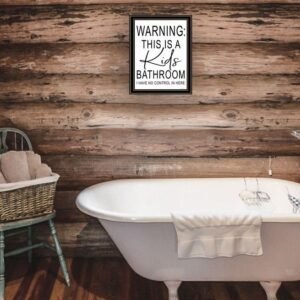 This kids bathroom black framed print bathroom wall art will add a beautiful decorative accent to your decor. This print is a visual artistic expression that allows you to decorate your space in style. Reproduced for you on wood, this hanging decorative accent will be a trendy and fashionable way to dress your walls in a rustic and modern farmhouse vibe. Adding this hanging wall art to your space to make your room feel more finished and attractive. Utilize this opportunity to create a focal point in the room with this fabulous wall decor option. 18-inch H x 14-inch W x 1-inch D