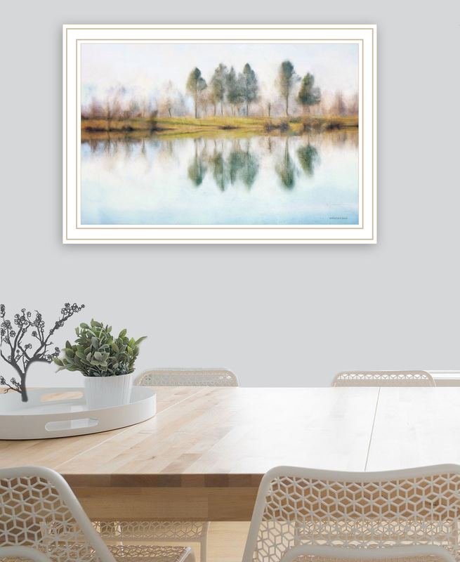 This lake reflections white framed print wall art will add a beautiful decorative accent to your decor. This print is a visual artistic expression that allows you to decorate your space in style. Reproduced for you on wood, this hanging decorative accent will be a trendy and fashionable way to dress your walls in a rustic and modern farmhouse vibe. Hang on your wall to add some up to date fashion and decoration. Utilize this opportunity to create a focal point in the room with this fabulous wall decor option. 14-inch H x 20-inch W x 1-inch DIngredients: Size: Color: Made In: United States