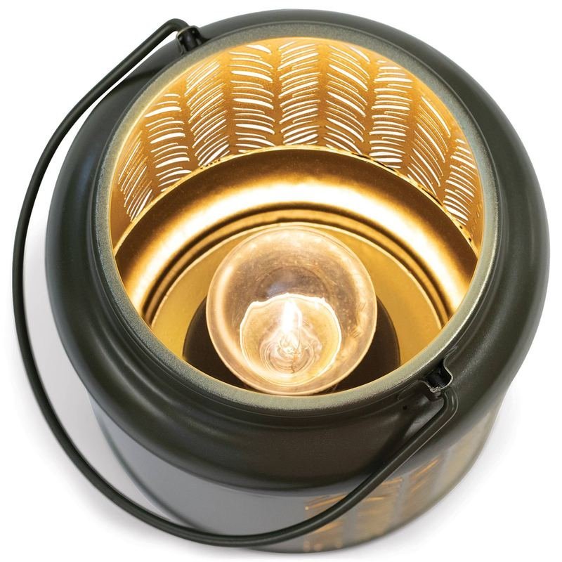 We Have Added The Warmth Of A Golden Glow To Our Woodland Green Distressed Lanterns; The Metal Diecut Lanterns Gleam From All Sides Along With A Portion Of The Footprints Poem (R).