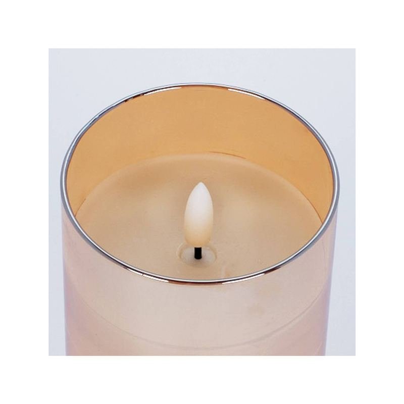 5in tall LED candle has a flickering flame appearance; 3in diameter.