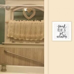 This lets get wrinkly 1 white framed print bathroom wall art will add a beautiful decorative accent to your decor. This print is a visual artistic expression that allows you to decorate your space in style. Reproduced for you on wood, this hanging decorative accent will be a trendy and fashionable way to dress your walls in a rustic and modern farmhouse vibe. Adding this hanging wall art to your space to make your room feel more finished and attractive. Utilize this opportunity to create a focal point in the room with this fabulous wall decor option. 15-inch H x 15-inch W x 1-inch DIngredients: Size: Color: Made In: United States