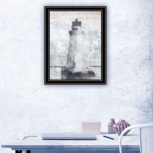 Bring some sizzle to your space with this eye-catching lighthouse black framed print wall art. This print is a visual artistic expression that allows you to decorate your space in style. Reproduced for you on wood, this hanging decorative accent will be a trendy and fashionable way to dress your walls in a rustic and modern farmhouse vibe. Hang on your wall to add some up to date fashion and decoration. Instantly liven up your space with this art that brings color and dimension to your walls. 18-inch H x 14-inch W x 1-inch D