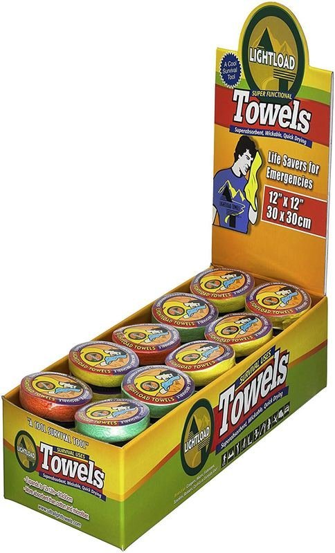 Wow! That’s a towel? You got to be kidding me. It’s so compact. Yes, it’s a full-size hand towel compressed to the size of a silver dollar, great for space and weight saving. Add water to the towel then behold, it unfolds too full-size. They absorb like a sponge about nine times it’s weight and quick dries. The towels are also good for cooling and insulation. Lightload Towels can also be used as first aid, static electricity insulation, tinder, padding, a mask and more. The packaging is 100 % waterproof. These 12×12 inch towels weigh .2oz: great add-ons to survival bags, emergency kits, prepper gear, backpacks, and travel luggage.