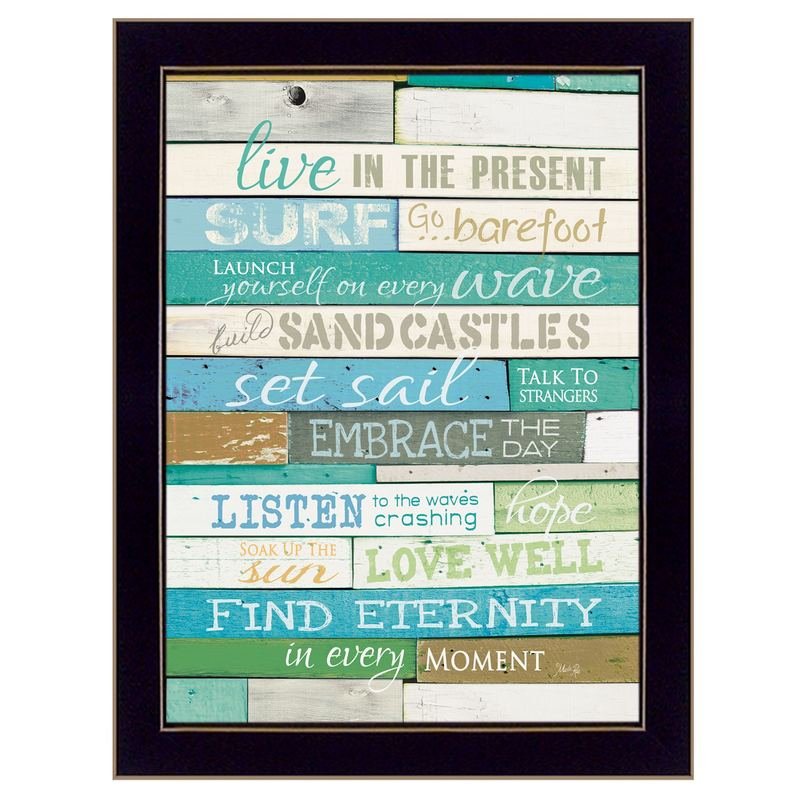 The live in the present 1 black framed print wall art is the perfect decorative accessory for your home. This print is a visual artistic expression that allows you to decorate your space in style. Reproduced for you on paper, this hanging decorative accent will be a trendy and fashionable way to dress your walls. Adding this hanging wall art to your space to make your room feel more finished and attractive. Instantly liven up your space with this art that brings color and dimension to your walls. 14-inch H x 10-inch W x 1-inch DIngredients: Size: Color: Made In: United States