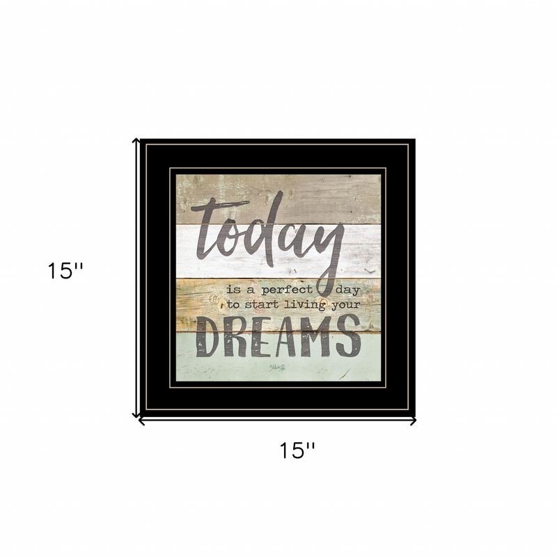 This live your dreams today 2 black framed print wall art will add a beautiful decorative accent to your decor. This print is a visual artistic expression that allows you to decorate your space in style. Reproduced for you on paper, this hanging decorative accent will be a trendy and fashionable way to dress your walls. Hang on your wall to add some up to date fashion and decoration. Utilize this opportunity to create a focal point in the room with this fabulous wall decor option. 15-inch H x 15-inch W x 1-inch DIngredients: Size: Color: Made In: United States