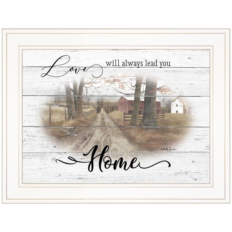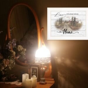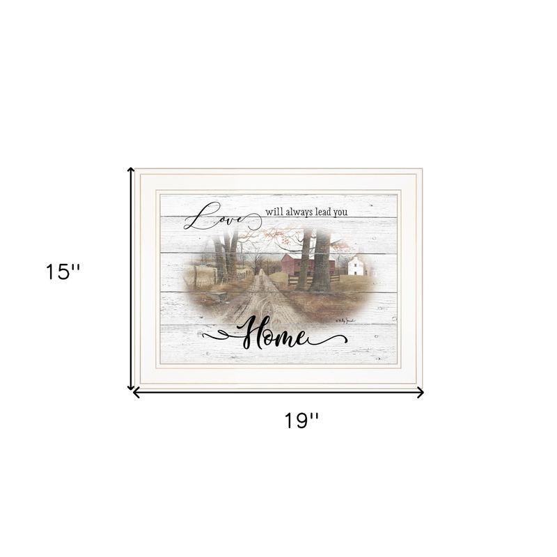 Add an air of fashion to your room and rejuvenate the space with this love will always lead you home 1 white framed print wall art. This print is a visual artistic expression that allows you to decorate your space in style. Reproduced for you on paper, this hanging decorative accent will be a trendy and fashionable way to dress your walls. Hang on your wall to add some up to date fashion and decoration. Instantly liven up your space with this art that brings color and dimension to your walls. 15-inch H x 19-inch W x 1-inch D