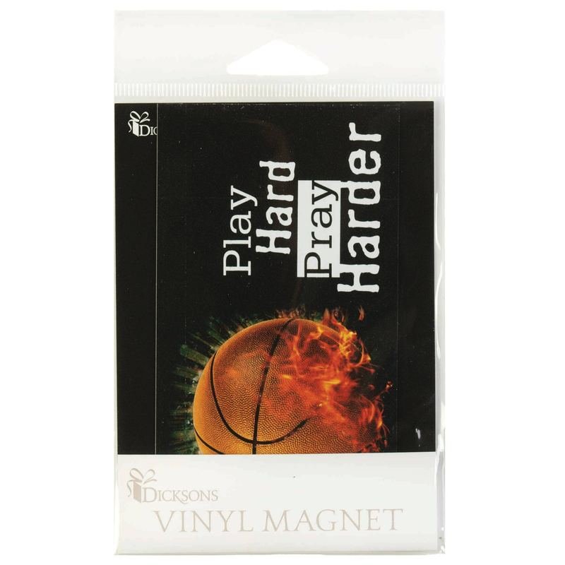 Inspiring Vinyl Magnet Displays A Flaming Basketball With: Play Hard Pray Harder.