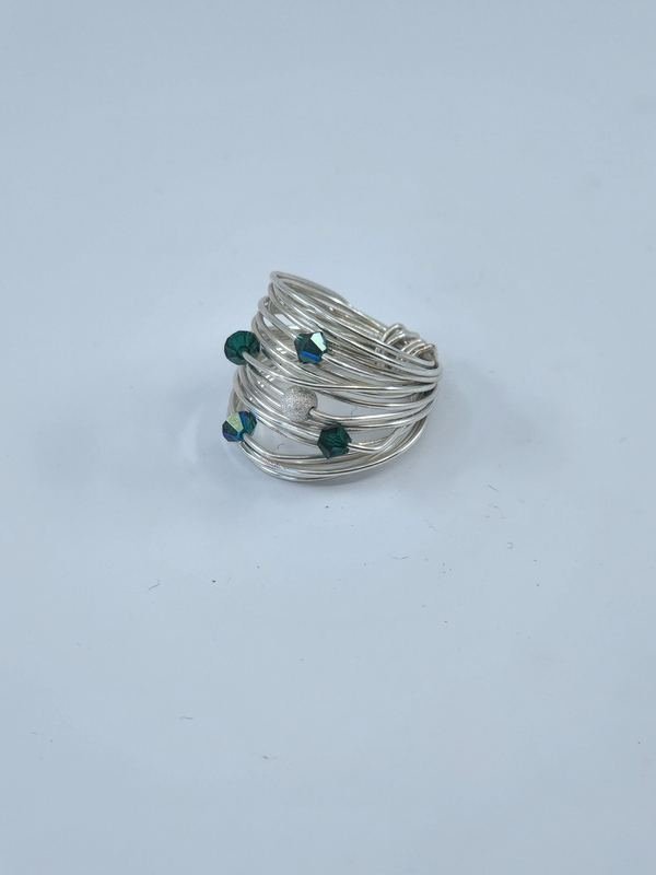 Marcia Wire Wrap Ring with Forest Green Swarovski Crystals.