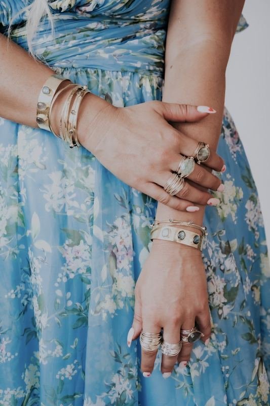 Each ring will have grey comet Swarovski crystals. Additionally, gold-toned rings will have a rose gold stardust bead, while the silver-toned rings will have a silver stardust bead.