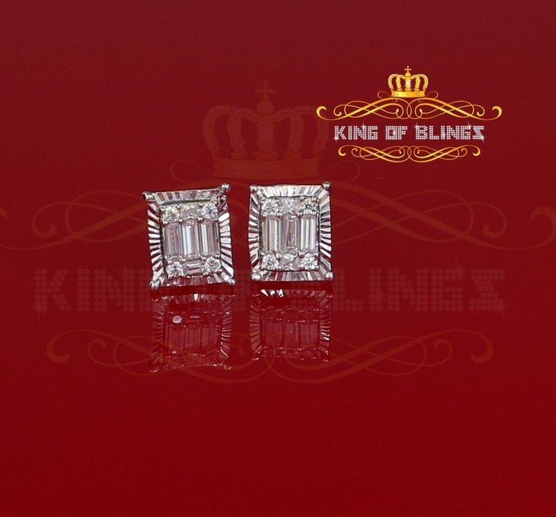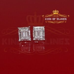 Mens Elegant Square white Gold Sterling Silver Screw Back Hip Hop Stud earrings