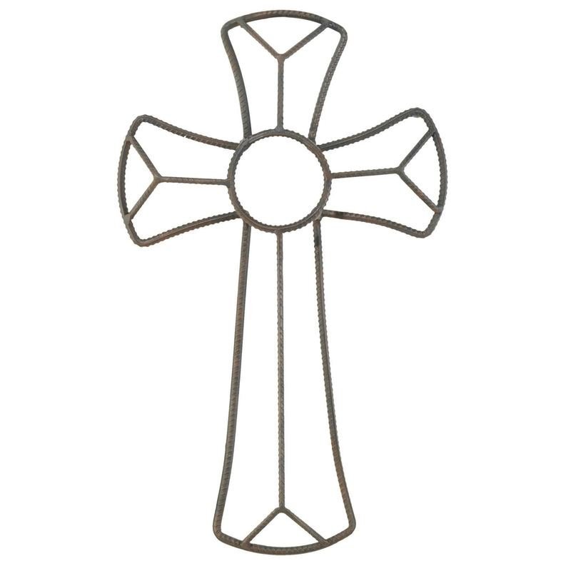 Metal Wall Cross Has A Rough Texture In An Open Dimensional Design With Distressed Black Metal Finish.
