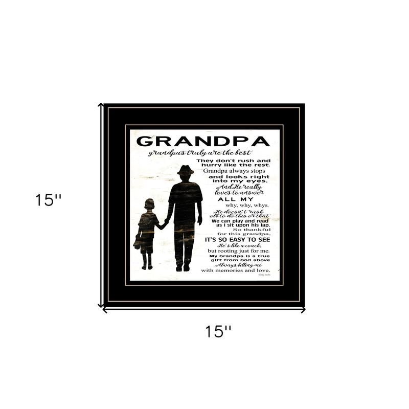 This my grandpa is the best 1 black framed print wall art will add a beautiful decorative accent to your decor. This print is a visual artistic expression that allows you to decorate your space in style. Reproduced for you on paper, this hanging decorative accent will be a trendy and fashionable way to dress your walls. Hang on your wall to add some up to date fashion and decoration. Utilize this opportunity to create a focal point in the room with this fabulous wall decor option. 15-inch H x 15-inch W x 1-inch D