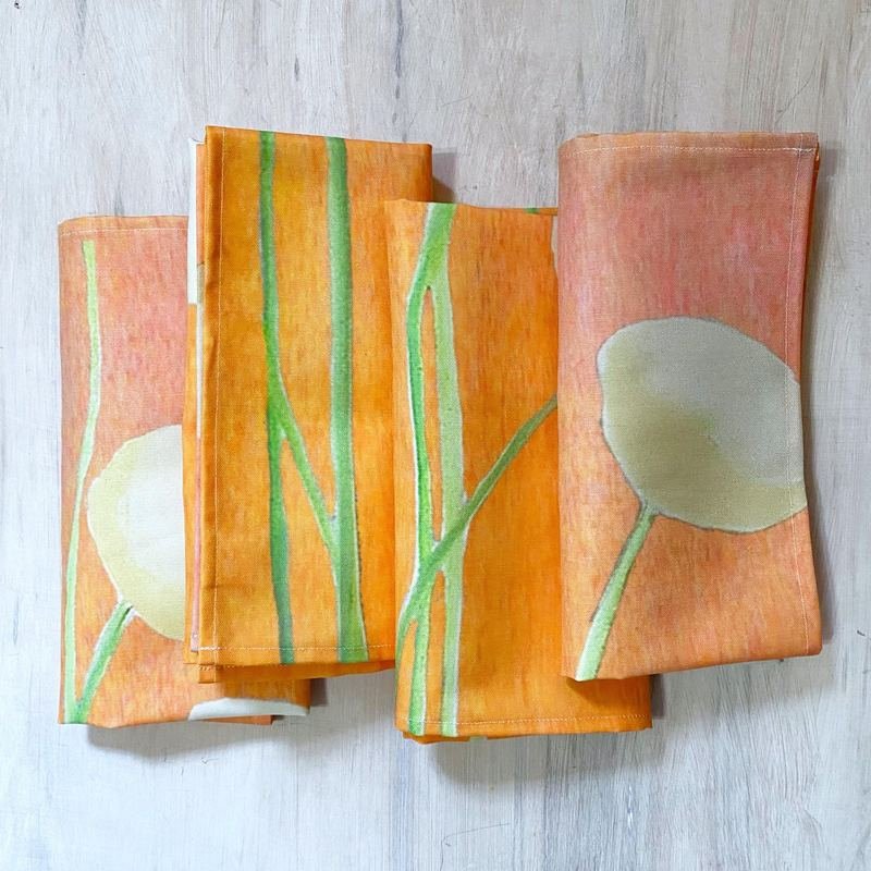 The magic of these napkins is that depending on how they are folded, a different colorful artwork emerges for your table.