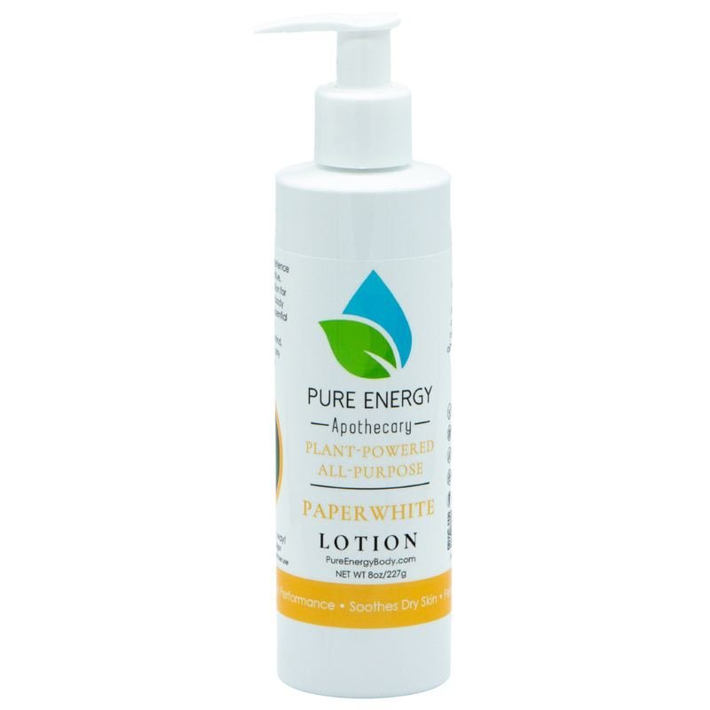 Exotic and reminiscent of spring’s first blooms! Paperwhite is a soft, musky scent that is relaxing and grounding.This all-purpose lotion delivers luxurious moisture for your skin and is made with clean, plant-based ingredients and zero chemicals. Versatile and powerful; perfect for hands, body, and even your face!Plant-Based, Non-Toxic, All-NaturalPETA Certified Vegan and Cruelty-FreeSmall-batch handcrafted, made in VermontIngredientsAloe barbadensis leaf juice*, shea butter*, sunflower oil*, plant-based emulsifying wax, cocoa butter*, with a proprietary blend of paperwhite essential oil*, rosehip oil*, jojoba oil*, coconut oil*, apricot kernel oil*, and vitamin E**certified organic