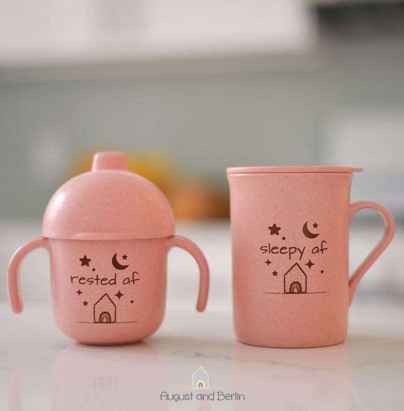 “Sleep af / Rested af” cups gift set.