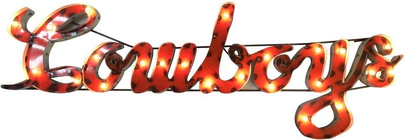 Built by hand, our lighted recycled metal signs feature light strands with glass bulbs, creating a truly authentic look. Cool, retro, and just plain fun, there are many ways to describe our fan favorite recycled metal signs. Styles without lighting are also available.