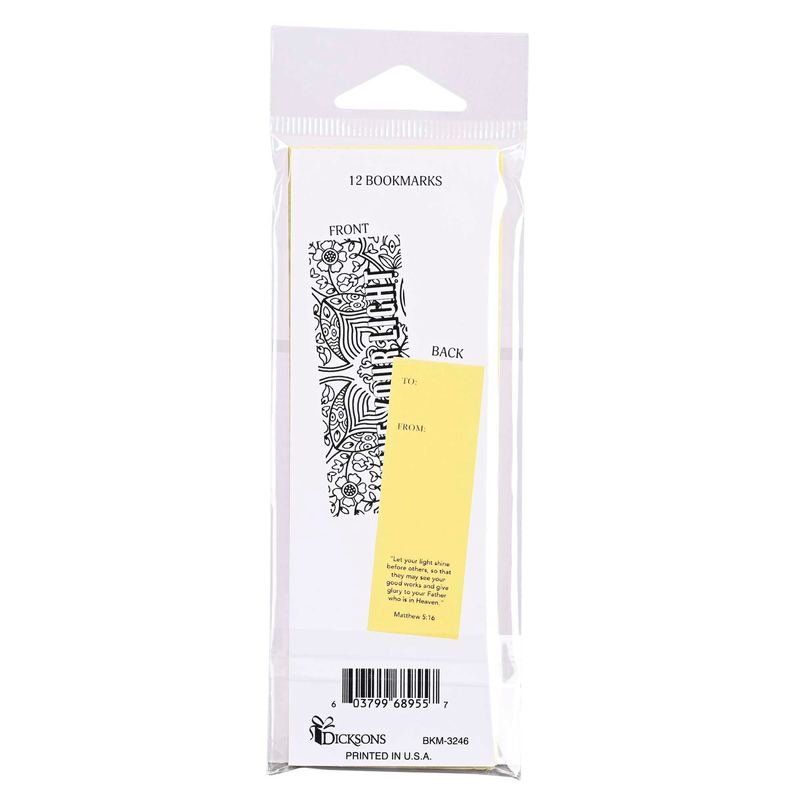 12 Bookmarks Per Pack – 1-3/4 X 5-1/4 H. This Black And White Floral-Themed Bookmark Features Matthew 5:16 In Paraphrase: Shine Your Light. Feel Free To Color These Bookmarks To Your Aesthetic. Printed In USA.Ingredients: Size: Color: White/BlackMade In: United States